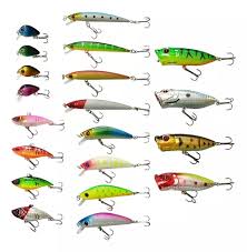 - Existen varios tipos de señuelos para imitar peces, insectos u otros animales. Los más comunes son los crankbaits, jigs, spinnerbaits, poppers y cucharillas.