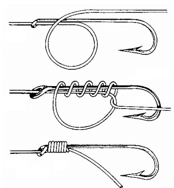 Nudo Snell: Este nudo es conocido por ser uno de los más confiables para asegurar el anzuelo a la línea de pesca, especialmente útil en situaciones donde se requiere una conexión fuerte y estable.
